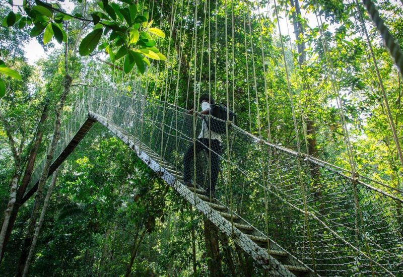 Experience the forest from above on one of the world’s longest canopy walkways, suspended 40 meters high and stretching over 500 meters. Walk above ancient giants, spot hornbills flying below you, and feel the rainforest breathing around you.